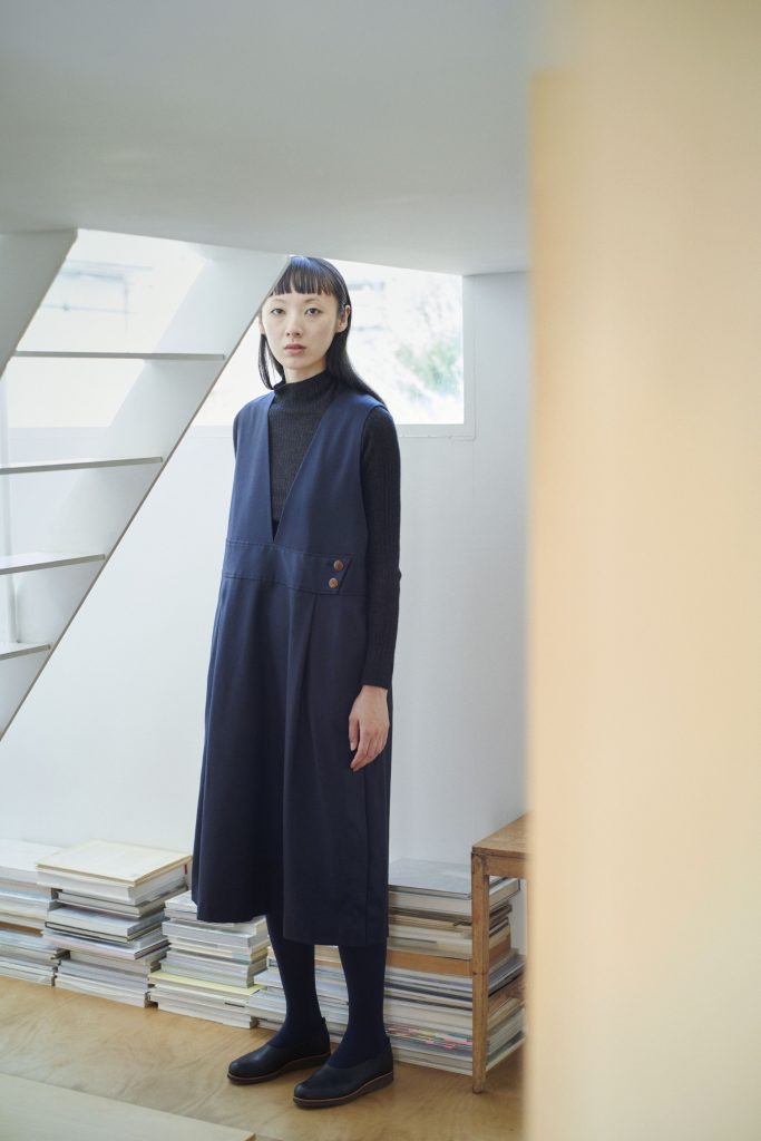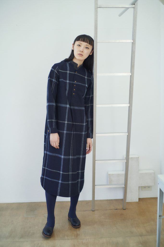 インディゴスタンド襟ワンピース ¥39,600 (税込) / FOP25401D