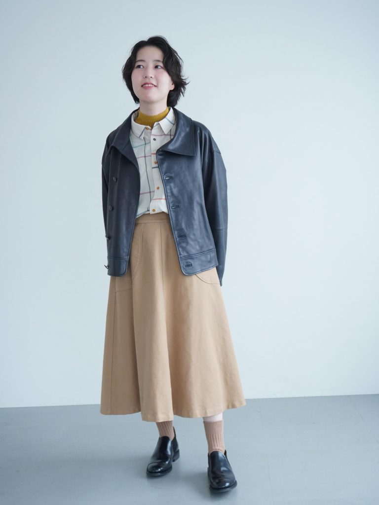 オーバーサイズなので 季節が進んで寒さを感じる頃には 厚手のニットを合わせても ゆとりをもって着ていただけます